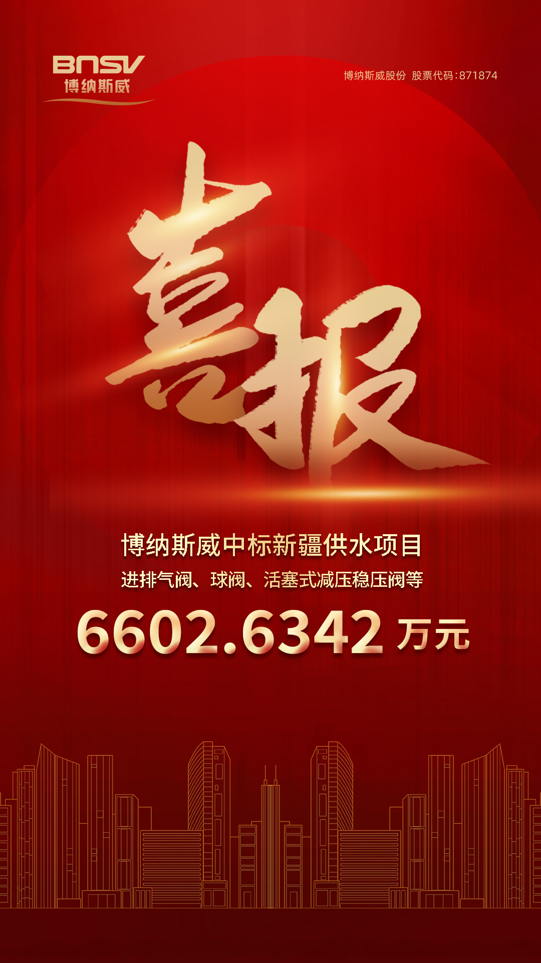 喜報!博納斯威中標新疆4個供水項目6602.6342萬元
