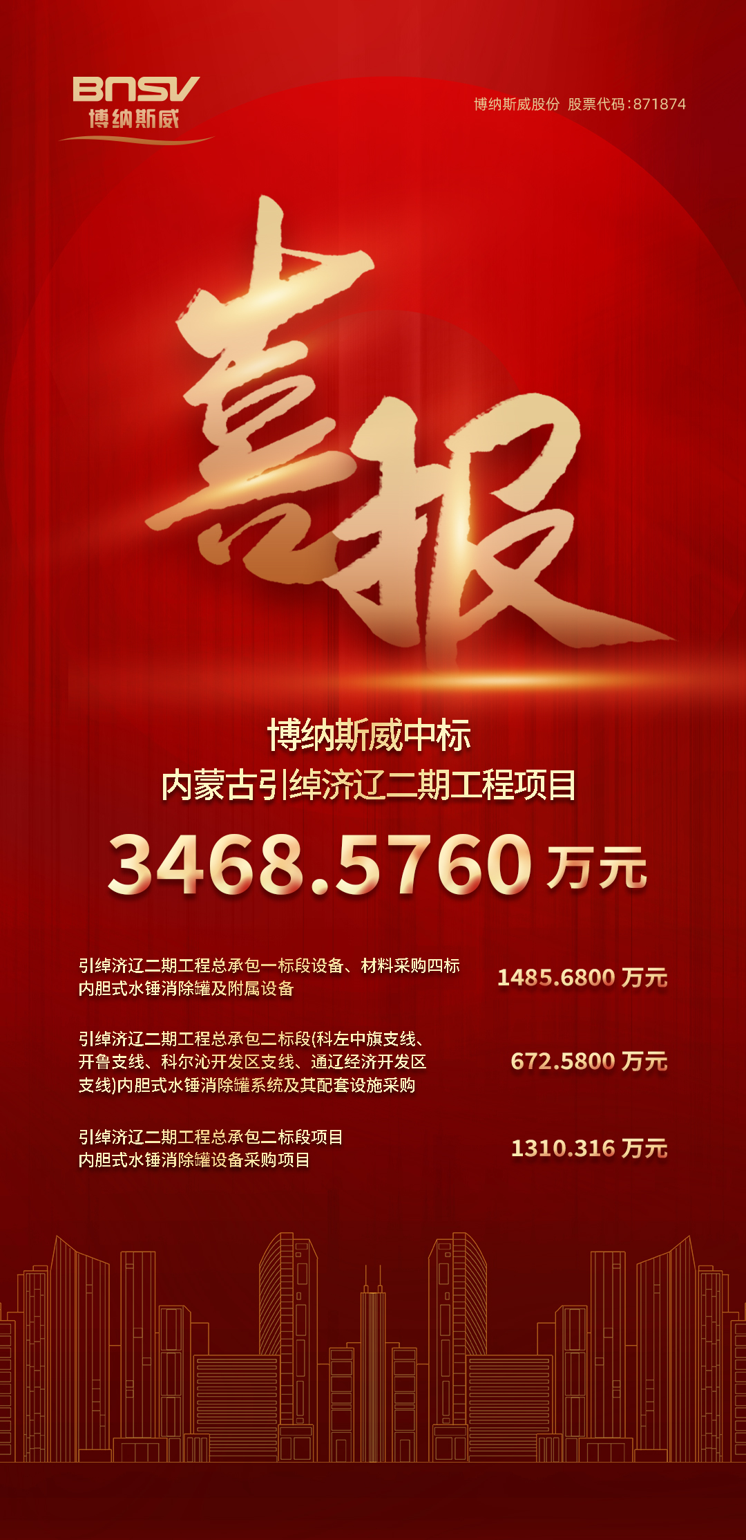 喜報!博納斯威中標內蒙古引綽濟遼二期工程項目3468.5760萬元